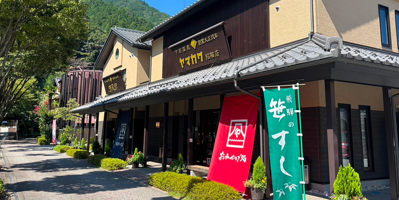 下呂の町を歩けば、ふっと目に入る「ヤマカワ」の看板。
